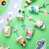 Zdobione plakietkami z samochodami.