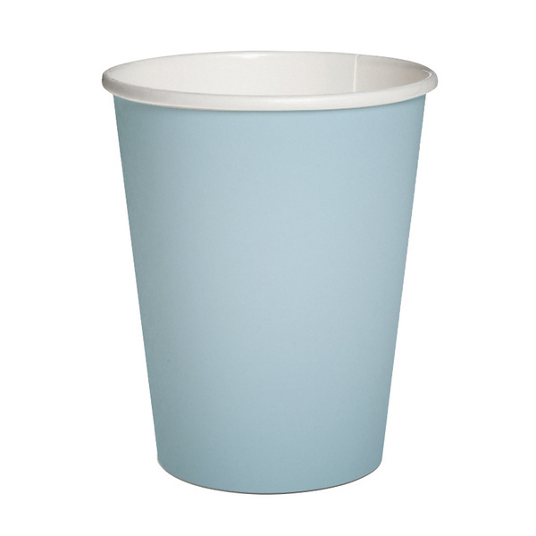 Kubeczki papierowe w kolorze jasnym niebieskim.