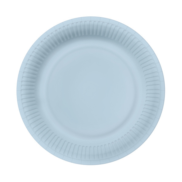 Zestaw 10 talerzyków papierowych w kolorze jasnym błękitnym.