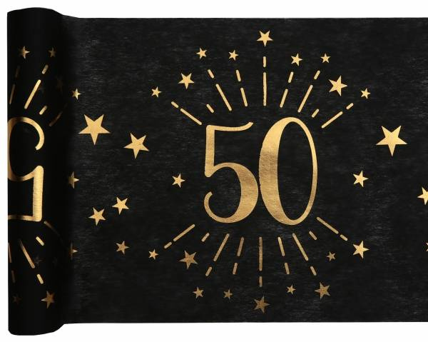 Złoty nadruk w postaci liczby 50, gwiazdek i paseczków.