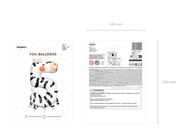 Balon foliowy w kształcie cyfry 5.