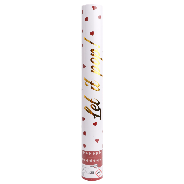 Tuba strzelająca papierowymi serduszkami w kolorze czerwonym.