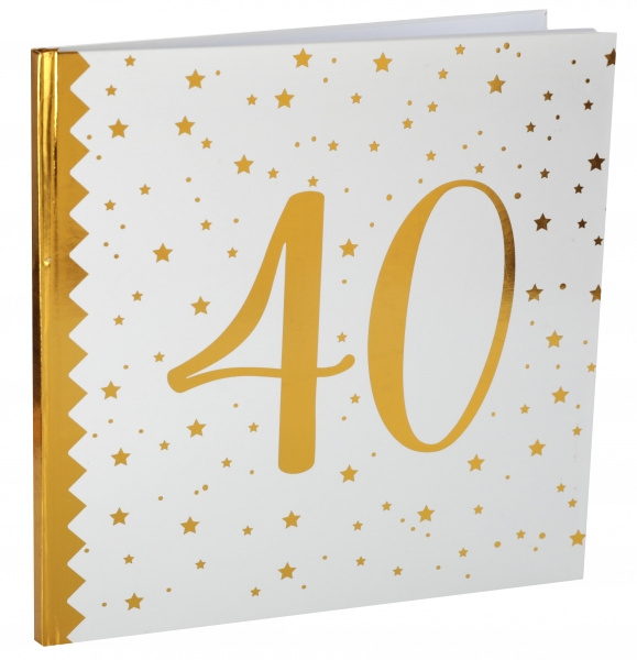 Księga gości na 40 urodziny w kolorze biało-złotym.
