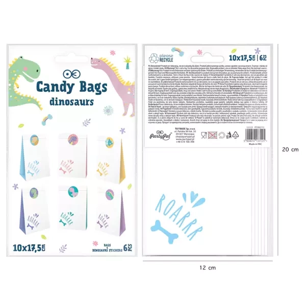 TOREBKI NA CUKIERKI DINOZAURY 6 SZT.
