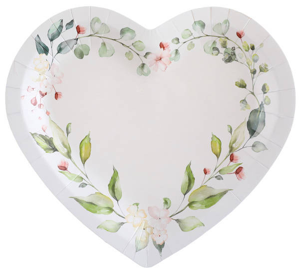 Zestaw talerzyków papierowych w kształcie serca.