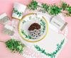 Produkt w kolorze białym, ozdobiony gałązkami i liśćmi.
