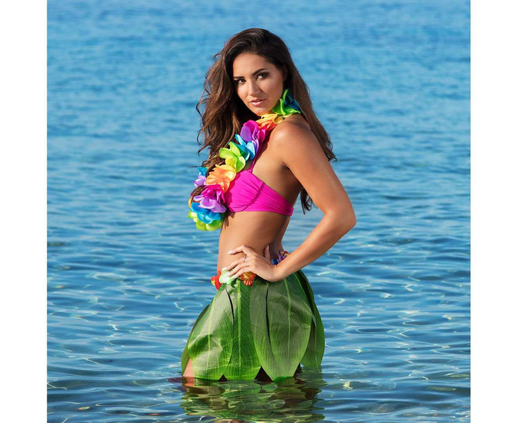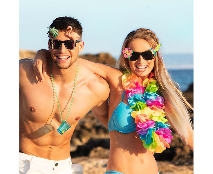 Kolorowy naszyjnik hawajski wykonany z materiałowych kwiatów.