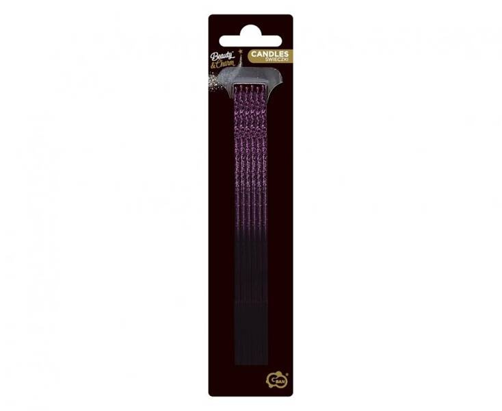 ŚWIECZKI CZARNE BROKATOWE OMBRE FIOLETOWY 6 SZT