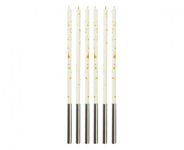 Świeczki Białe z Złotymi Kropkami i Srebrną Lamówką.