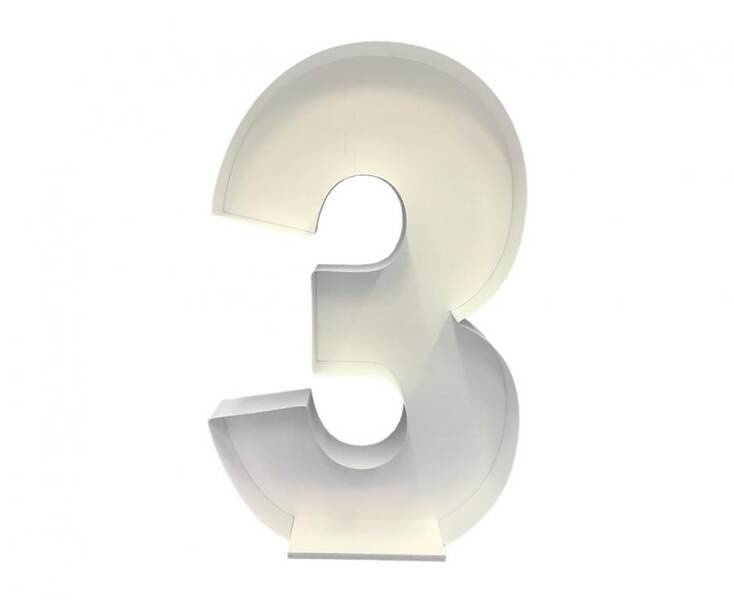 SZABLON DO WYPEŁNIANIA BALONAMI – CYFRA 3 Kolor: Biały Wysokość: 120 cm Szerokość: 76 cm Materiał: Twardy styropian i tektura falista Producent: Nikoloon Produkt DIY – do samodzielnego złożenia Do złożenia producent sugeruje użyć pistolet do kleju na zimno Zestaw nie zawiera balonów ani pistoletu do kleju.