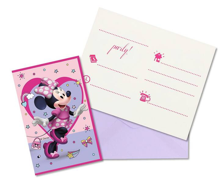 • Zestaw zaproszeń z kopertami z nadrukiem Myszki Minnie.
