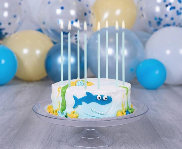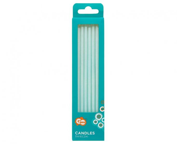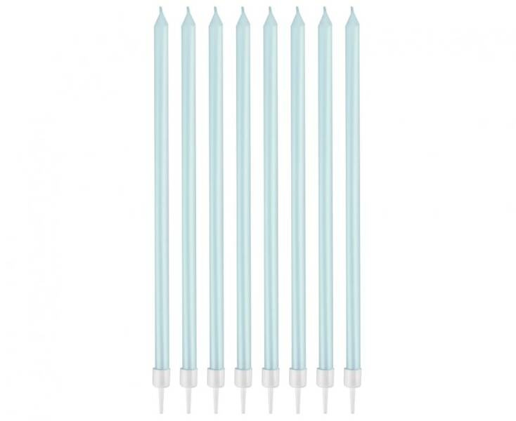 ŚWIECZKI JASNONIEBIESKIE PERŁOWE, 8 SZT.