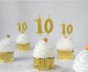 - Metaliczna świeczka w kolorze złotym w kształcie cyfry 0.