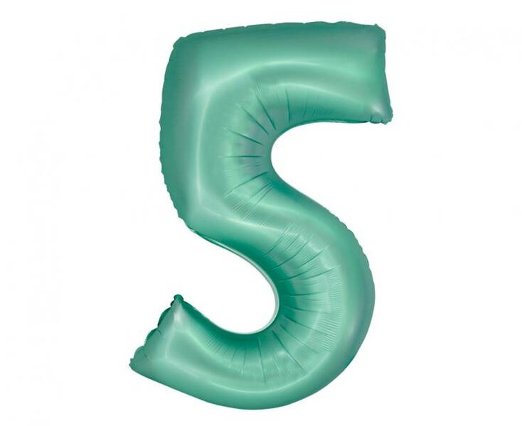 BALON FOLIOWY CYFRA 5, MATOWA MIĘTOWA Rozmiar po napompowaniu: 76 cm Ilość: 1 szt. Balony są przeznaczone do napełnienia helem. Napełnienie ich powietrzem spowoduje, że balony nie będą się unosić. Balony nie są napełnione helem ani powietrzem. Balon posiada zawór samozamykający.