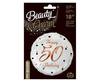 BALON FOLIOWY BIAŁY HAPPY 50 BIRTHDAY RÓŻOWO-ZŁOTY NADRUK 45 CM