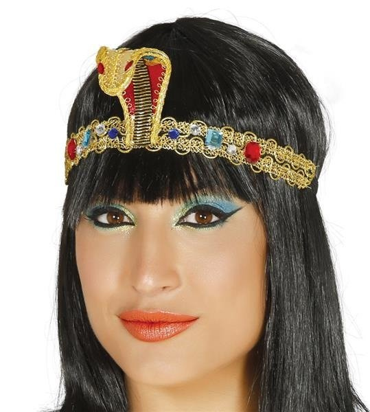 Egipska opaska złota z tasiemkami i kolorowymi kryształkami.
