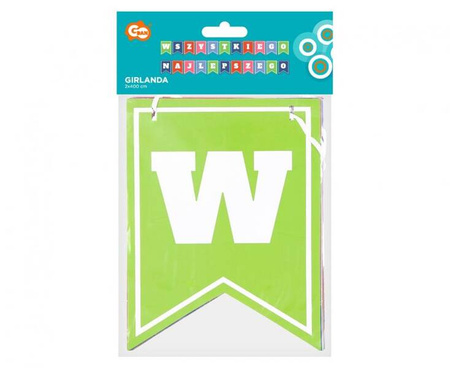 - Girlanda składa się z 22 kolorowych flag z literami tworzącymi napis „WSZYSTKIEGO NAJLEPSZEGO”.