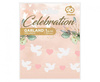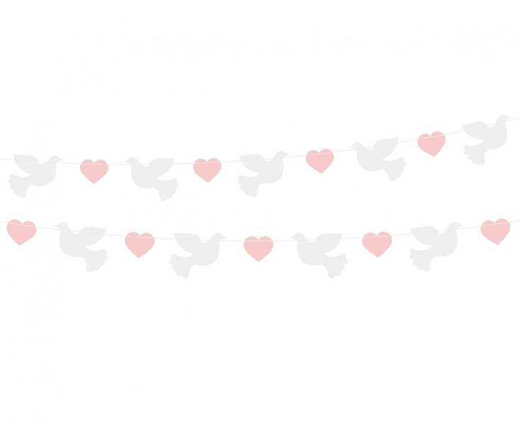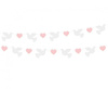 Girlanda papierowa z białymi gołąbkami i różowymi serduszkami.