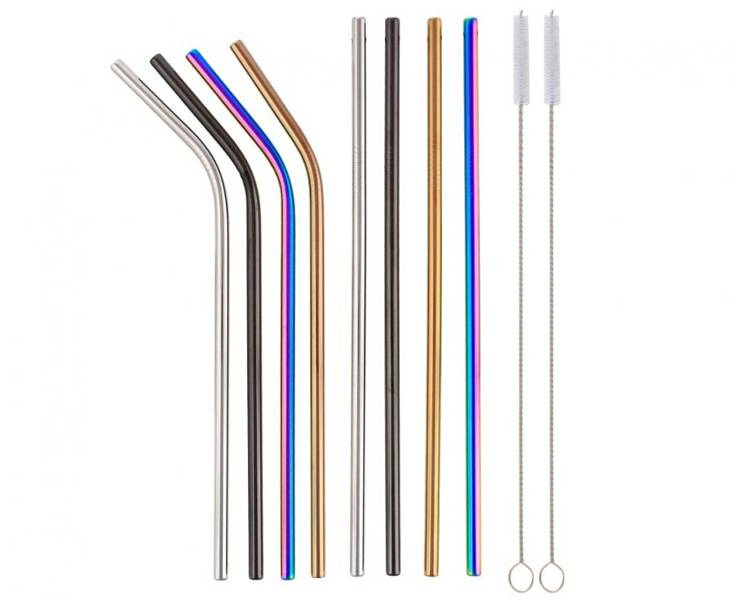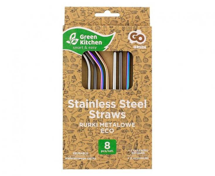 W zestawie 4 słomki proste, 4 słomki zagięte i 2 szczoteczki do czyszczenia.