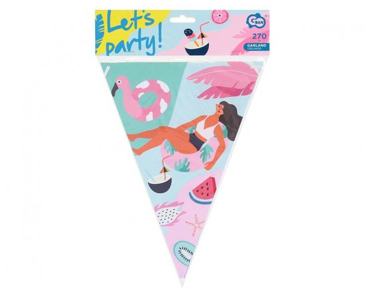 GIRLANDA PAPIEROWA SUMMER - LET'S PARTY (SURFING), FLAGI Długość: 270 cm Materiał: folia Ilość sztuk w opakowaniu: 1 szt. Kolekcja: Let's party Producent: GoDan S.A.