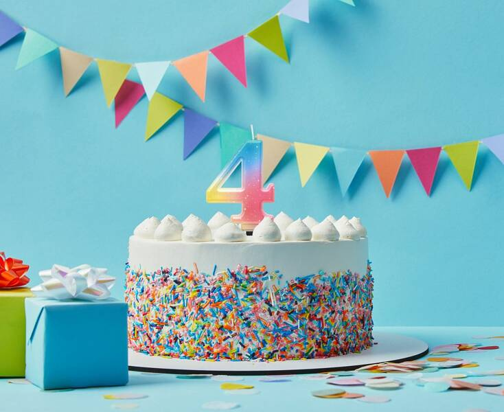 Świeczka urodzinowa w kształcie cyfry 4.