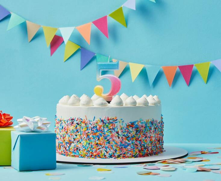Świeczka urodzinowa w kształcie cyfry 5.