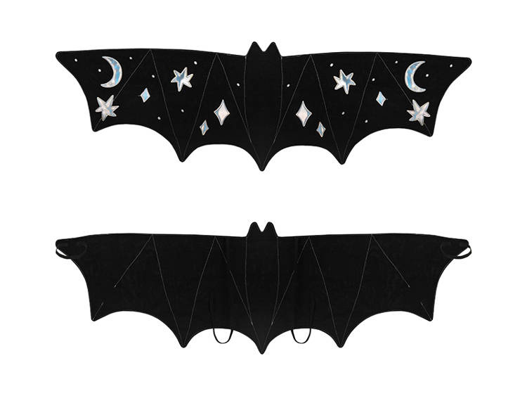 Strój - skrzydła nietoperza w kolorze czarnym ze srebrnymi elementami.