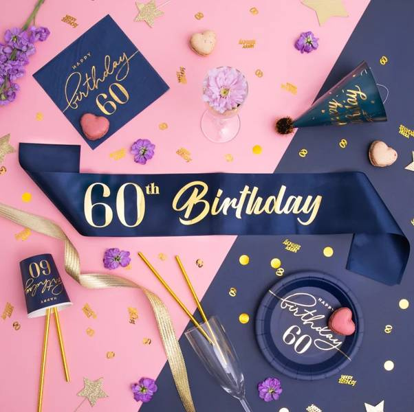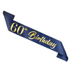 Szarfa urodzinowa w kolorze granatowym ze złotym napisem 60th Birthday.