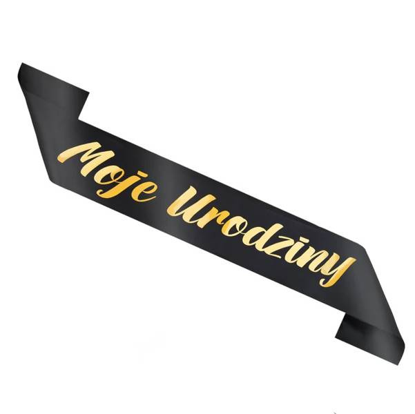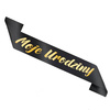 Szarfa urodzinowa w kolorze białym ze czarnym napisem Moje Urodziny.