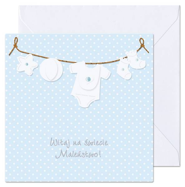 Kartka z okazji narodzin syna z napisem "Witaj na świecie Maleństwo".