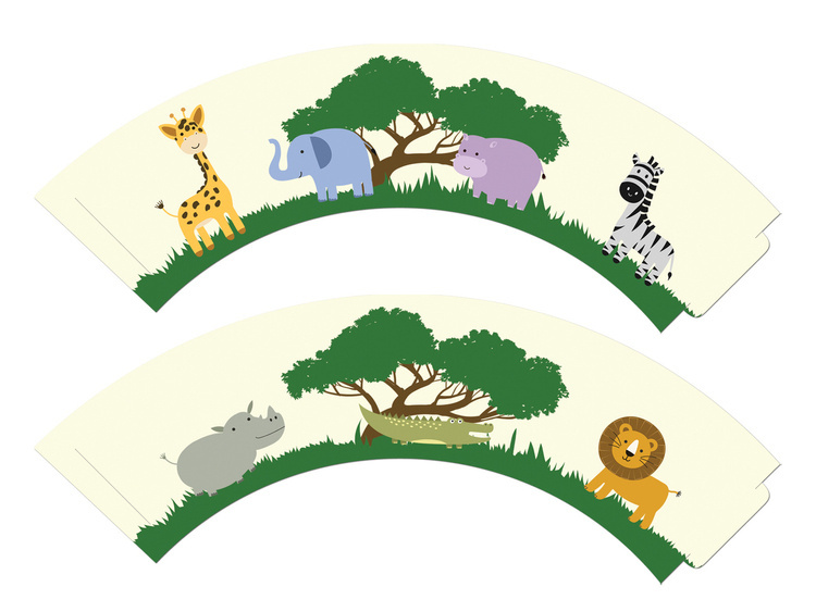 Papilotki na muffinki z motywem zwierzątek safari.