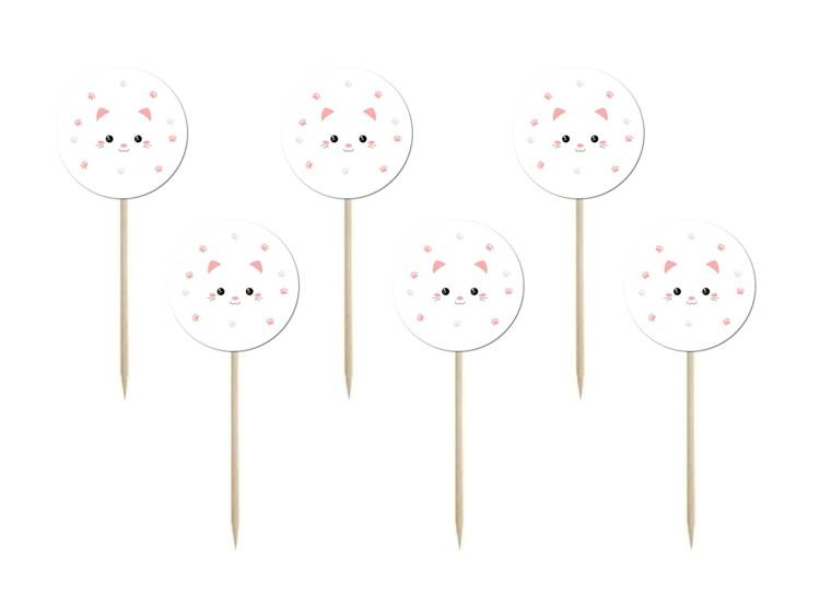 Zestaw papierowych pikerów mocowanych na patyczku.