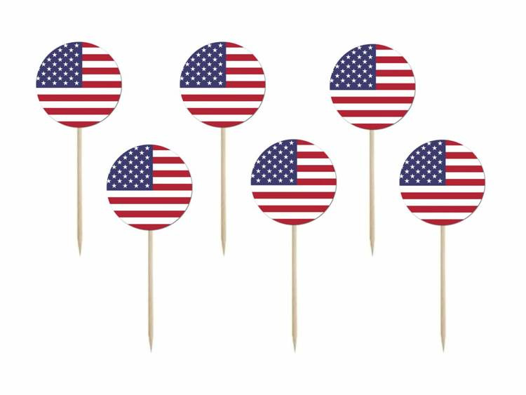 Zestaw papierowych pikerów mocowanych na patyczku.