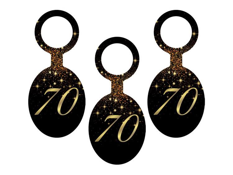 W kolorze czarnym, z nadrukowaną cyfrą 70.