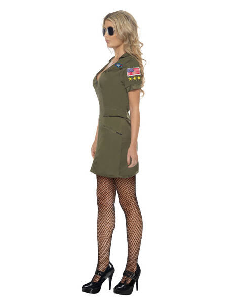 Strój Top Gun Sexi Pani Oficer, licencjonowany, kolor zielony, zestaw zawiera: sukienkę, rozmiar S