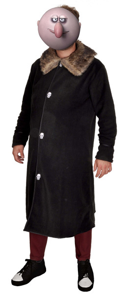 Płaszcz średniej długości, zapinany na guziki w kształcie czaszek.