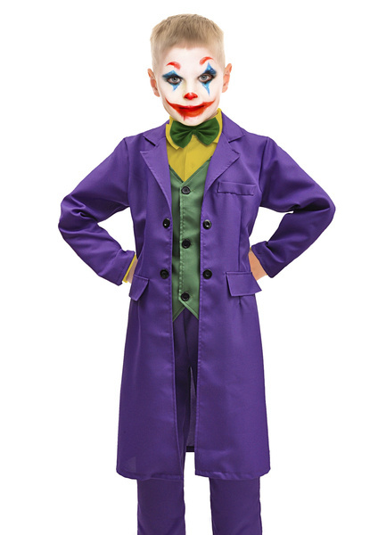 Fioletowy płaszcz z długim rękawem, z doszytą zieloną kamizelką.
