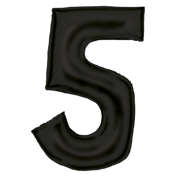 Balon foliowy w kształcie cyfry 5.