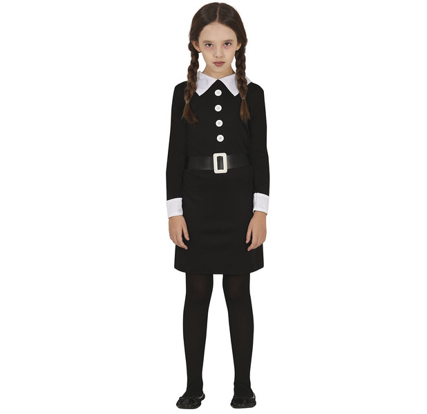 Sukienka w kolorze czarnym z białymi mankietami i kołnierzykiem.