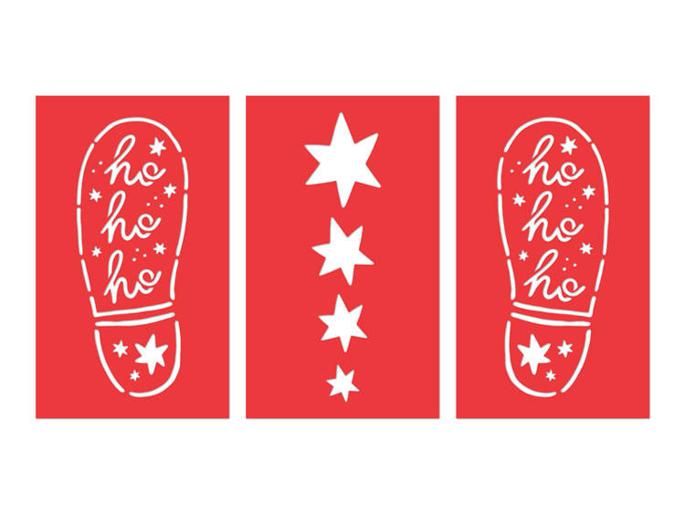 Papierowe szablony w kształcie śladów Mikołaja i gwiazdek.
