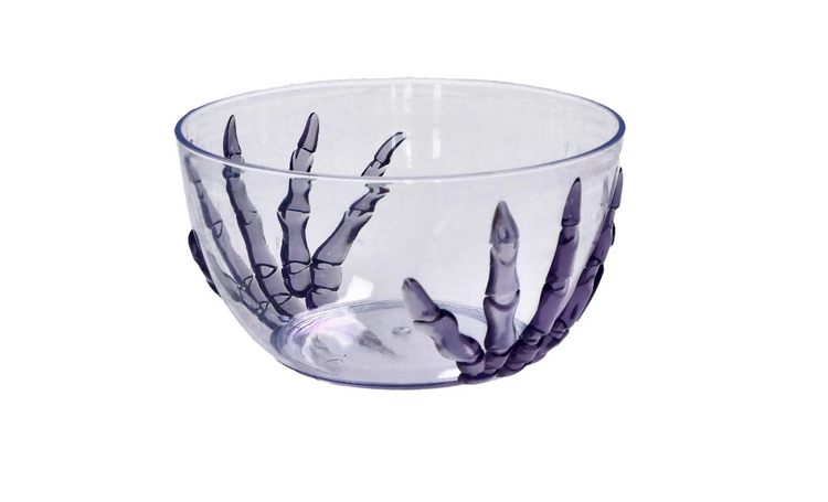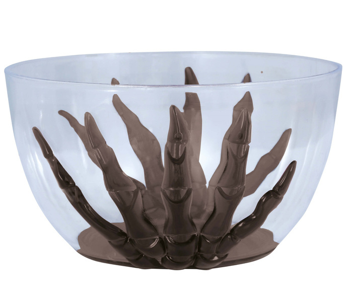 Transparentna miska z ręką szkieletora.
