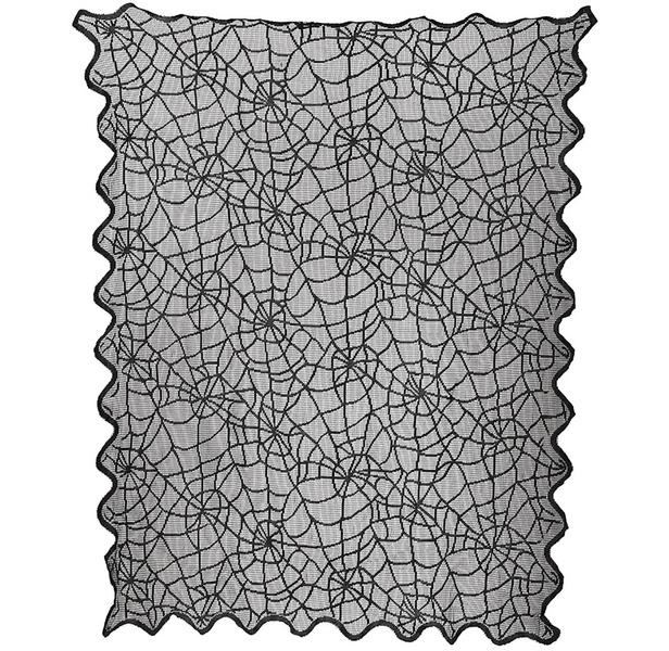 Obrus w kolorze czarnym, ze zdobieniem w kształcie pajęczyny.