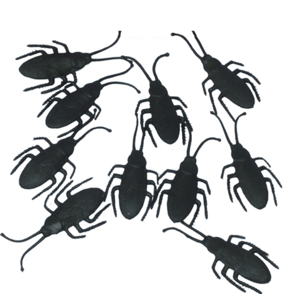 Zestaw 10 sztucznych chrząszczy wykonanych w tworzywa sztucznego.