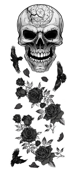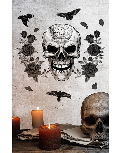 Dekoracyjne naklejki w kształcie czaszki, róż i ptaków.