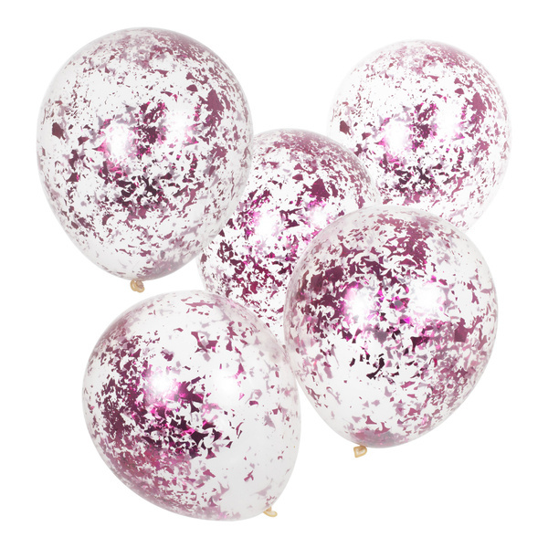 Balony lateksowe transparentne w środku z konfetti w kolorze różowym.