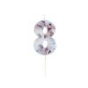 Świeczka z płatkami kwiatów w kształcie białej cyfry 8.