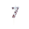 Świeczka z płatkami kwiatów w kształcie białej cyfry 7.