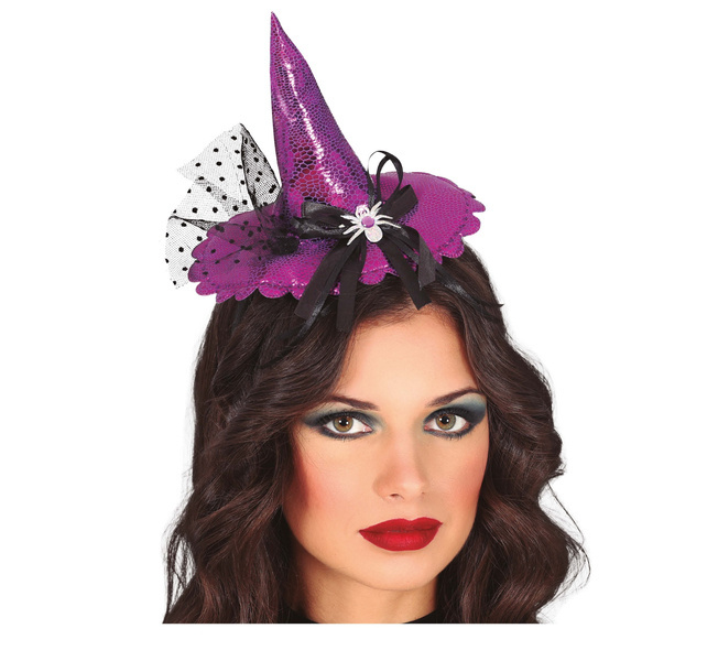 Kapelusz w kolorze fioletowym, mocowany na opasce.