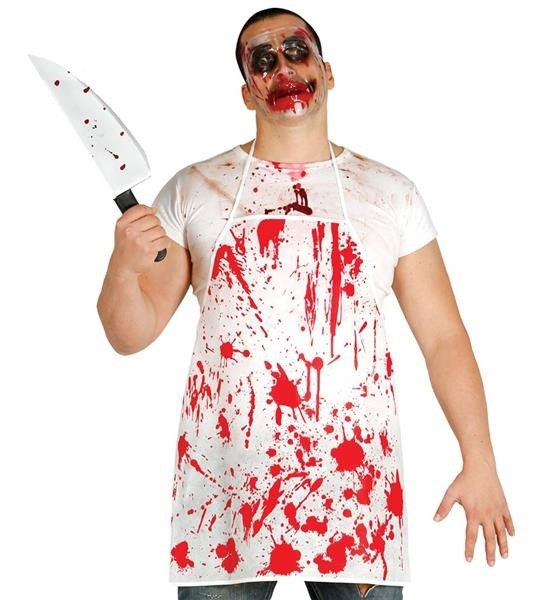 Fartuch plamiony czerwoną farbą, imitującą krew.