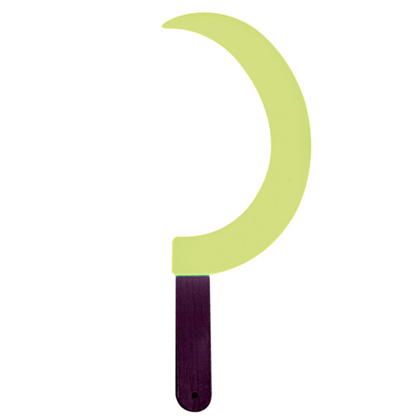 Sierp wykonany z tworzywa sztucznego, świecący w ciemności. Długość 44 cm.